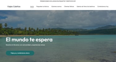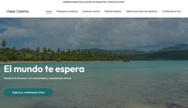 Página de ventas para una agencia de viajes que ofrece servicios de paquetes turisticos