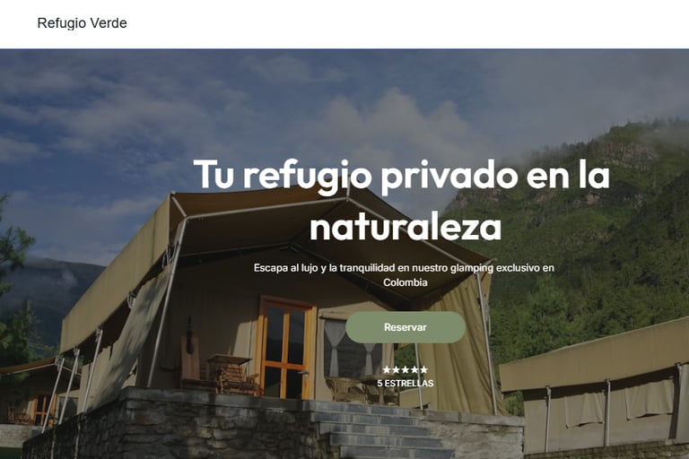 Página de ventas de un hermoso glamping afuera de la ciudad